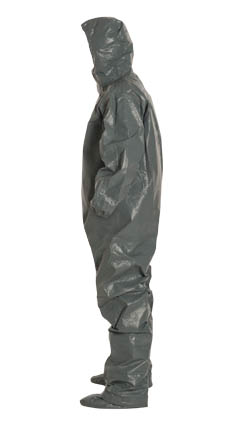 DuPont™ Tychem® 6000 FR Coverall. Certified to NFPA 1992, NFPA 2112, and the Category 2 Requirements of NFPA 70E. Respirator Fit, Drawstring Hood. Elastic Wrists. Attached Socks with Outer Boot Flaps. Double Storm Flap with Hook & Loop Closure. Taped Seams. Gray.